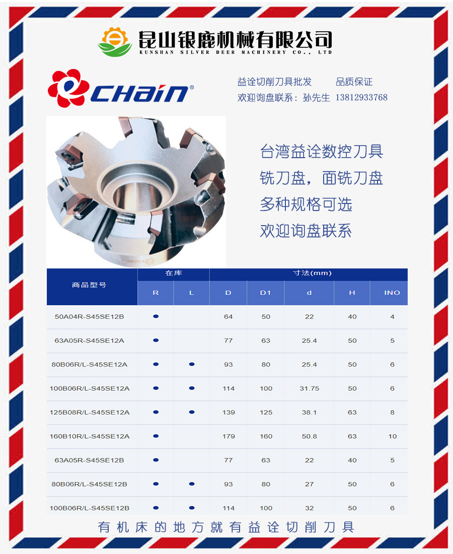 台湾益诠重切削铣刀盘,本公司备有充足与齐全的库存,希望以我们数十年的技术与经验,提供物美价廉的服务给各位使用者。